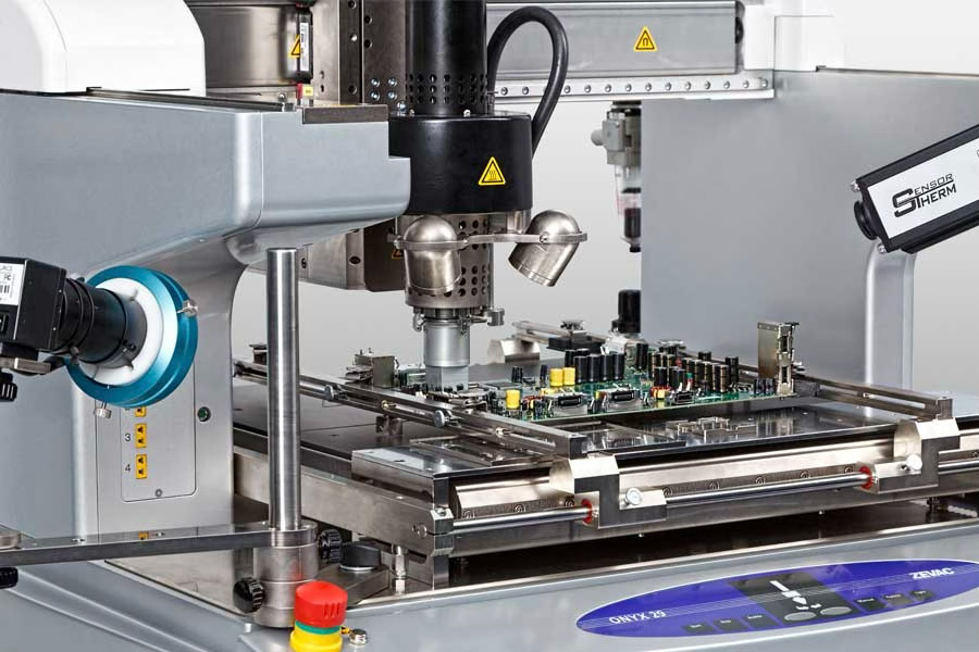 ONYX 29 半自動返修工作站 是瑞士 ZEVAC 專為中型 SMT 表面黏著電路板返修、元件替換、序列返修與研發製程驗證所打造的高精度工作平台。結合精密自動控制、先進視覺定位及靈活熱處理功能,適合各類 BGA、CSP、LGA、QFN 等元件的返修流程。
